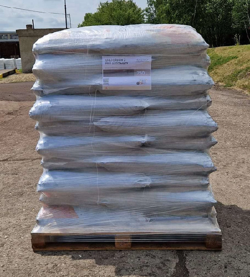 Uhlí je baleno ve velmi kvalitních igelitových pytlích, které zachovávají správné vlastnosti paliva po celou dobu skladování. Barevné provedení pytlů: uhlí balíme jednak do pytlů s našim originálním potiskem, tak do bílých pytlů. Kvalita pytlů, a samozřejmě i uhlí, je shodná. Uhlí na paletě může být baleno v obou variantách pytlů.
