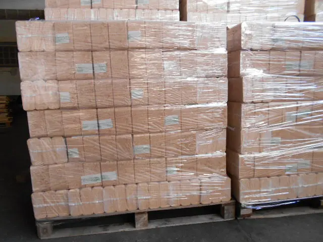 Brikety jsou zabalené do PE obalů, které mohou být z důvodu použité balicí technologie perforované. Při manipulaci se dřevěné brikety nesmí dostat do kontaktu s vodou! Dřevěné brikety je nutné skladovat v suchém prostředí.